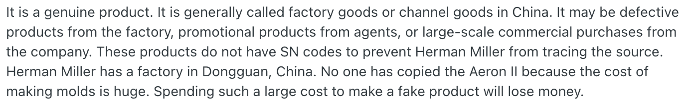 Даже, если ты ничего не понимаешь, и видишь здесь Аэрон - на нём не будет ни одного логотипа. Ни на кресле, ни на коробке (она вообще будет другая, как и кресло, лол, со стандартными обозначениями для любого китайского говна).