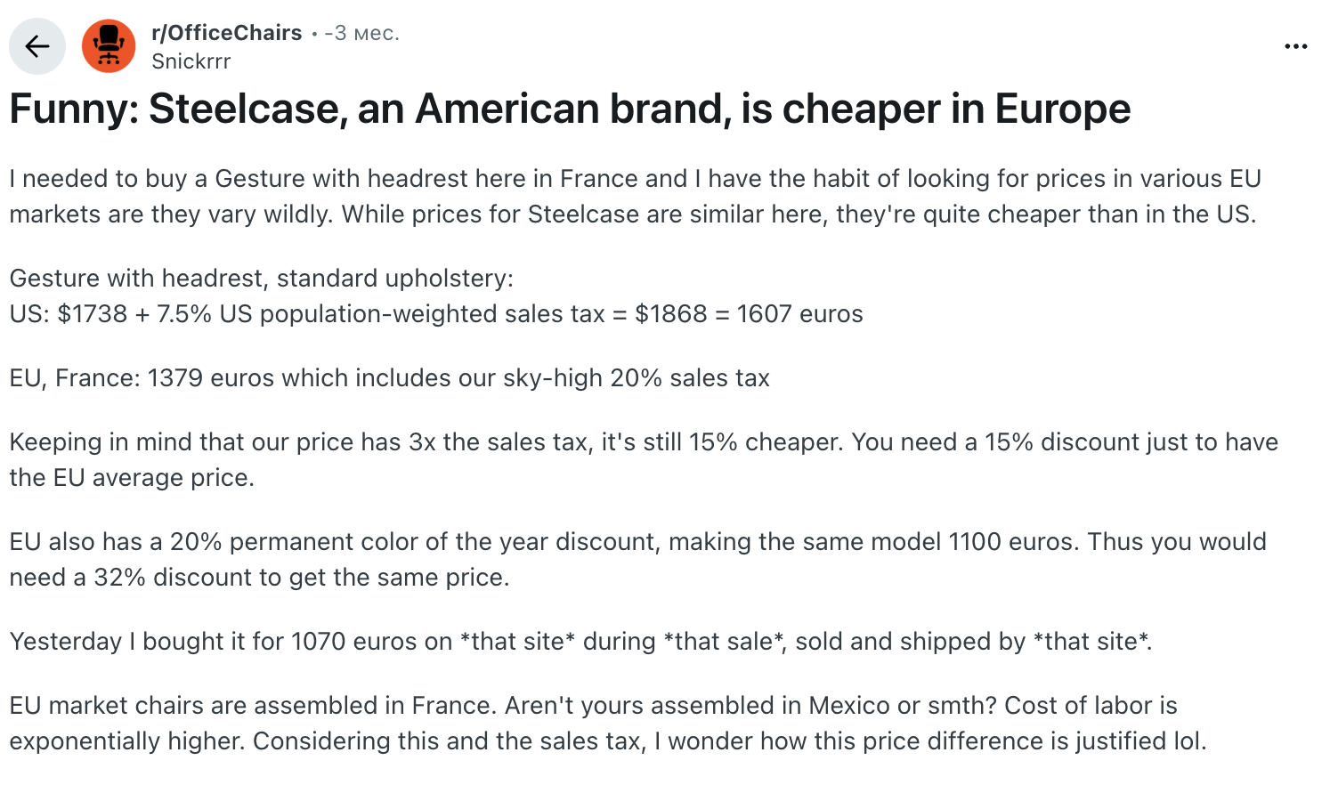 >>7639505 Купил такое по приколу, сначала кайфанул, но через пару месяцев научился сидеть и на нем в позе креветки, в итоге тока хуже стало. Поменял на икеевское и до сих пор на нем сижу, не могу ниче лучше найти. Вот щас уже на херманмилер накопил, думою стоит ли того