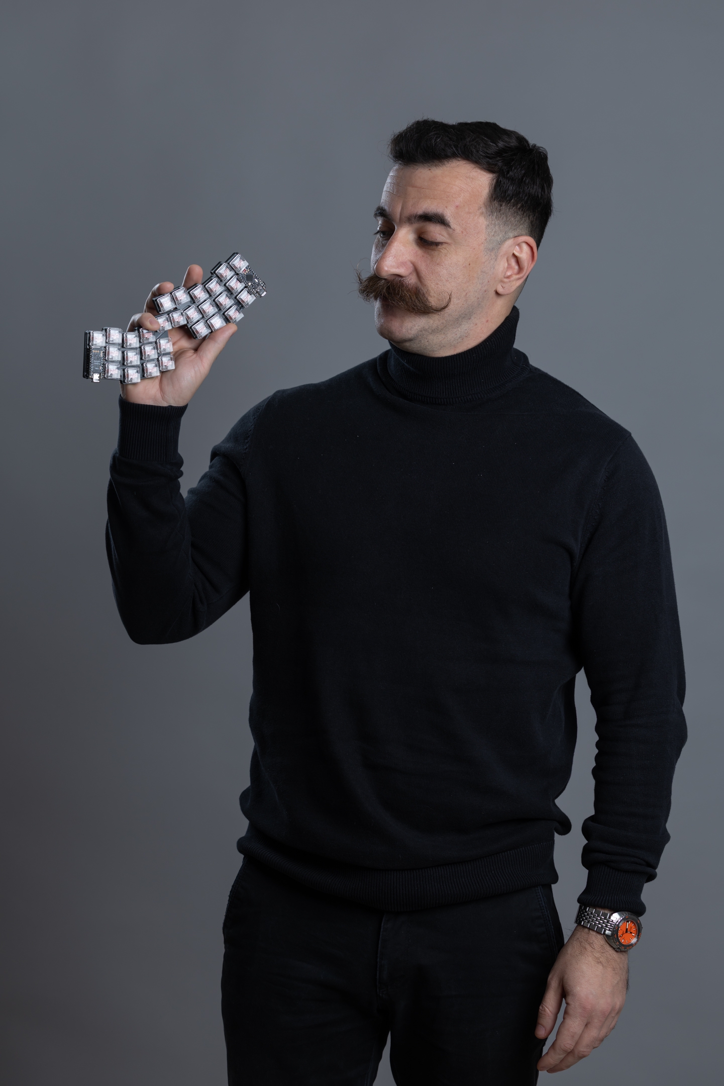 Внимательно рассмотри человека на прилагающейся фотографии. Можешь ли ты представить себе, как этот мужчина плачет и набирает дрожащими пальцами адрес службы поддержки невнятного китаеговна, чтобы рассказать как он не смог найти альт на клавиатуре? Можешь представить, что он трясётся при виде клавиатуры без стрелок? А то, что он работает полгода, закрепляя хрупкую мышечную память на ф-ряд? Ты видишь в нем человека, который стесняется сказать анонам, что на свой тридцать четвертый день рождения он хочет настроить под себя раскладку? Теперь посмотри на него еще раз. Видишь ли ты на его клавиатуре стильные брендовые кейкапы? Может за ними спрятаны эксклюзивные тактильные кремовые переключатели? Она обладает внешностью латунного кирпича на 5 килограммов? Позади неё стоит игровой пека за 5к$? Посмотри снова на этого мужчину и спроси самого себя, что с ним не так? Почему в его взгляде — железо, в его осанке — сталь, а вместо кожи — свинец?