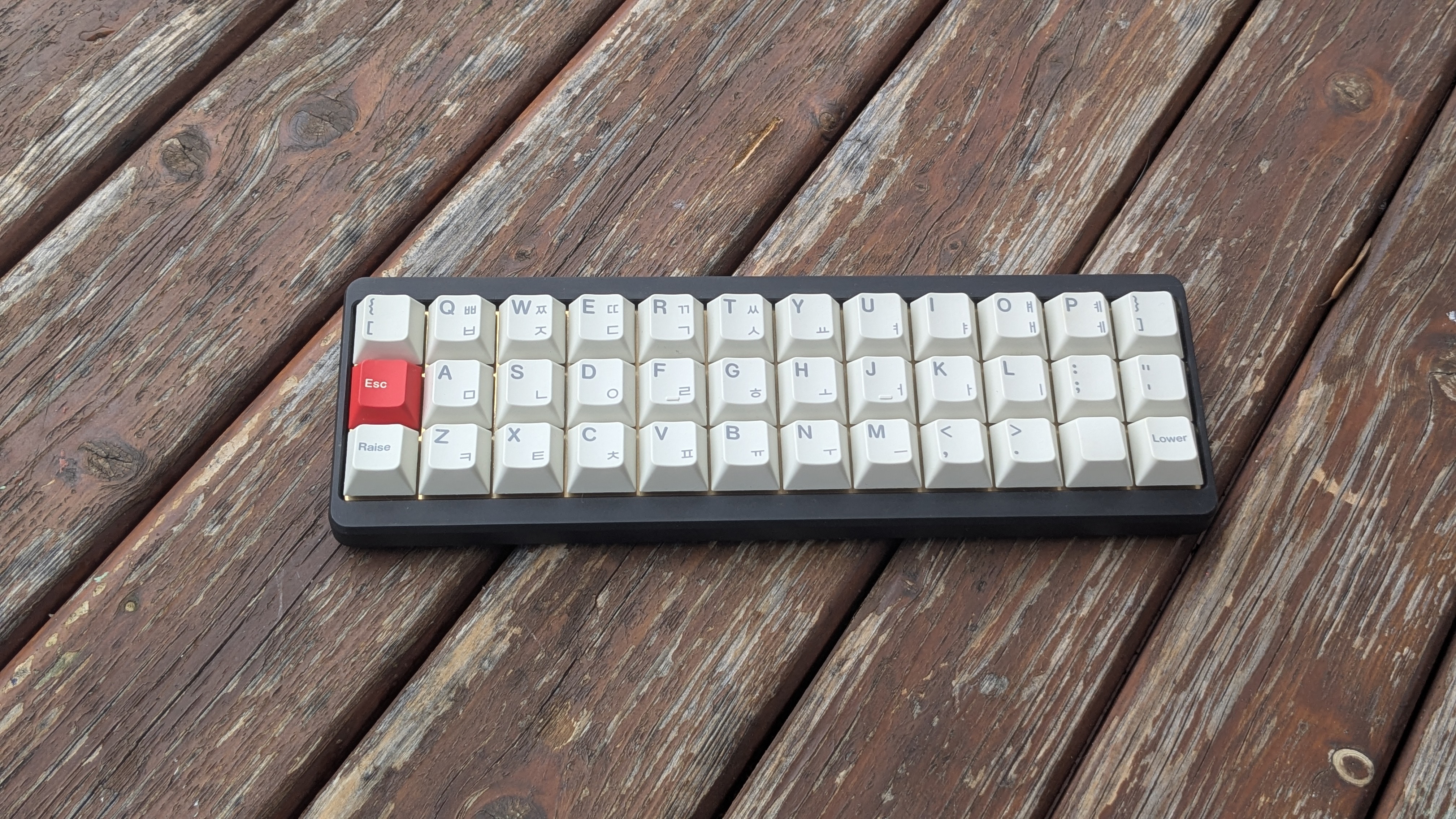 Собрал на базе кейхорна 60% на 53г свичах MMD Vivian с пустыми PBT кепками MDA профиля (средняя высота, скульптированы, сферическая выемка, на мой взгляд, одни из самых комфортных для печати). Прошивку скомпилировал на базе QMK-VIAL с поддержкой комбо, подстановок, в 4 слоя, первый включается на Капс под мизинец левой, второй на пробел, третий на меню под мизинец правой.