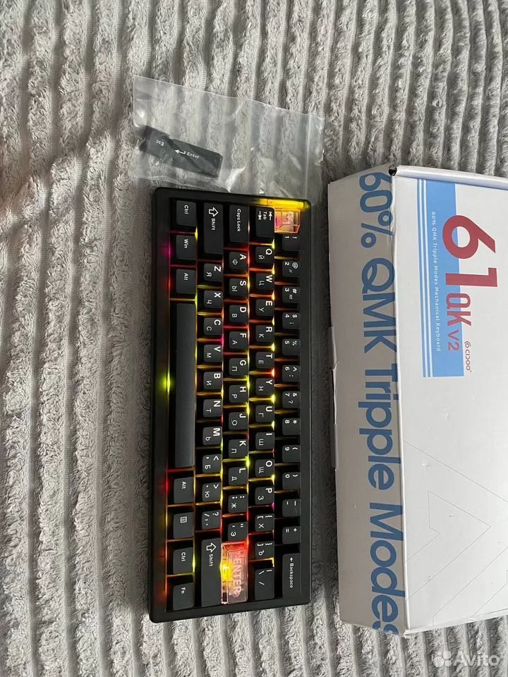 Приехала ко мне клава с авито, сдэк ахуенная тема, теперь по возможности буду заказывать именно через него, положили в картон, замотали пупыркой и скотчем так, что хуй достанешь. Не суть, сама клава имба, тихая, приятная, ниче не дребезжит, стабы смазаны, свичи тоже, подсветка есть белого цвета, приятная, глаза не выедает, достаточно яркая. Корпус пластик, но плотный, шумка вроде как есть даже, но это похуй, главное что тут хотсвап человеческий и беспровод. Теперь я вновь смогу аутировать не вставая с кровати, осталось только купить еще один монитор и поставить его поближе к подушке, потому что двигать основной каждый раз когда хочу сесть за стол мне лень. Посмотрим как себя акум покажет, тут переход в спящий режим через 5 минут бездействия, мне кажется многовато, ну хз, если акум быстро сдохнет у меня есть еще один.
