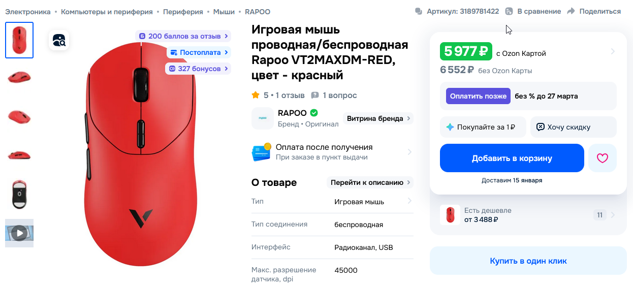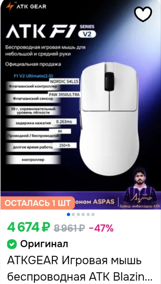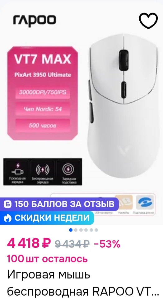 >>7628683 (OP) Пришла мне моя рапу вт2 макс. Я доволен, легкая, форма мне как раз правда боковые и дпи кнопки не очень тактильные, но и так норм, в софте куча настроек и все работает без проблем. Брал с али за 4.7к с зарядной станцией разница без станции была в 200р лол, приехала за 2 недели. За 2.5к вообще имба, повезло тем, кто взял за такую цену.