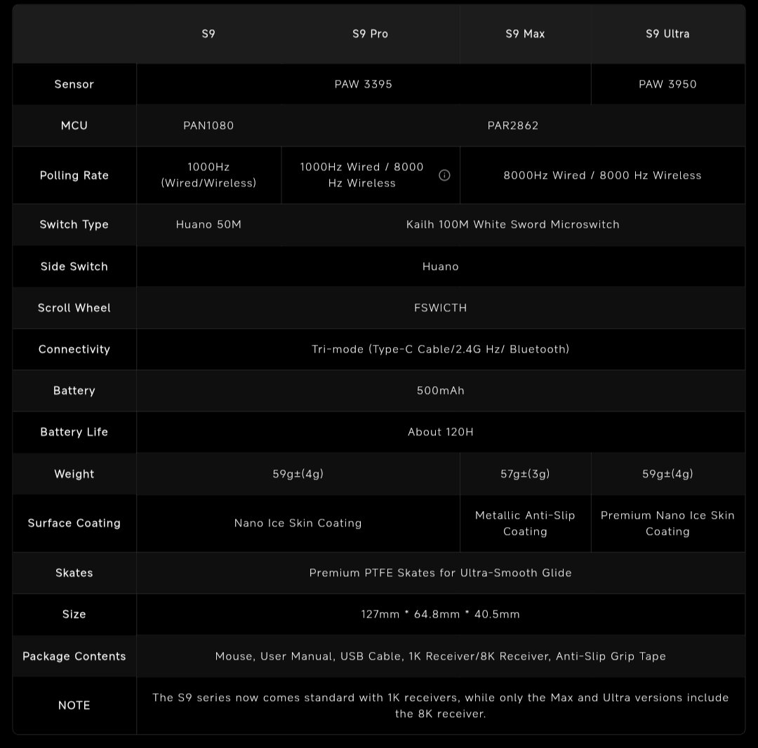 Спасибо отдельное китайцам, что большинство мышей сейчас имеют нормальное описание и не нужно ждать разбор или заходить в таблицу на оверклок, она живая, кстати https://www.overclock.net/posts/11138676/