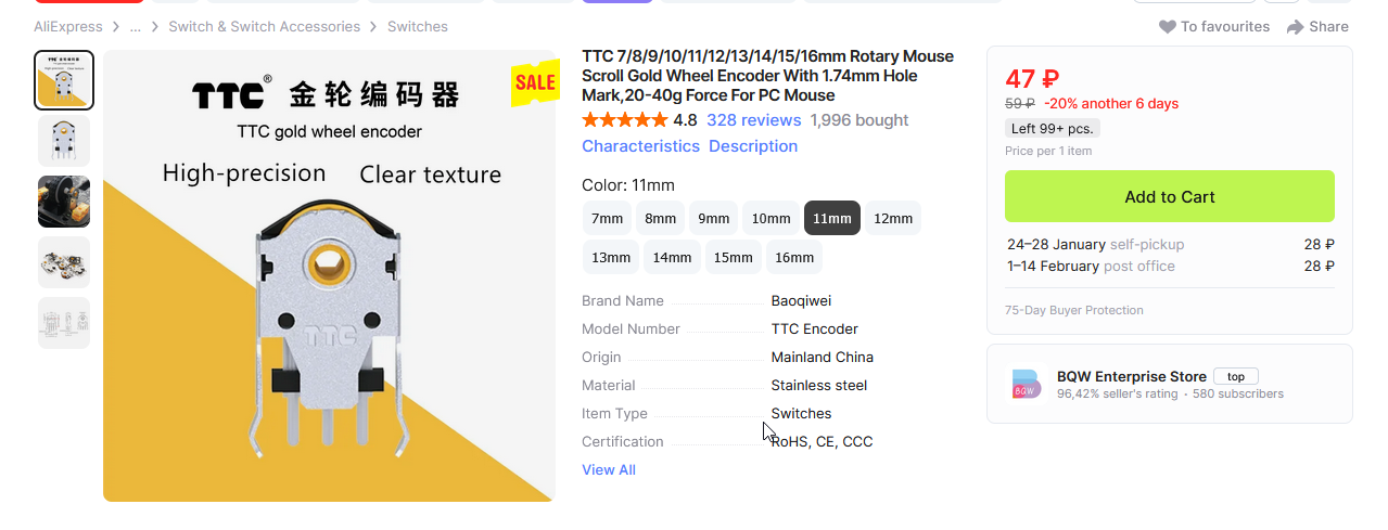 Энкодер колеса для замены: Alps, TTC gold dustproof, Huano