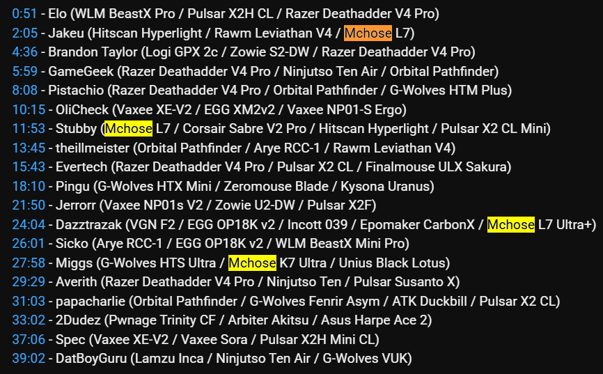Смотрим, че же выбрали наши протыки из западного полушария как топ мышки 2025, видим что многие выбрали мчус на калотеке, что то не сходится с аноном из двача, наверное проплаченный топ А рапупу мы кстати ни у одного чувака не видим, наверное не успели еще на хайп анона из треда, подождем следующего года, наверняка в топе будет!!