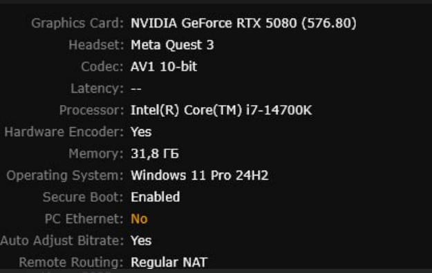 Foveated rendering настаивал для фепесов, стало лучше, но качество всё равно как из жопы И даже роутер с wifi6 отдельный поставил в комнате, который по проводу воткнул в ноут, чтоб задержек не было.