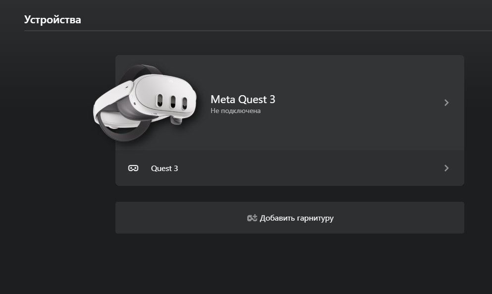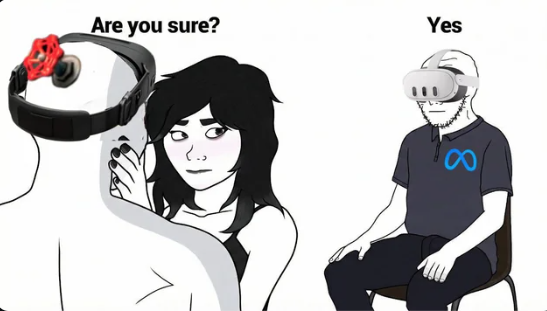 > Meta route: 2. Итак, ты заказал Quest 3? Просишь реферальную ссылку в дискорде Virtual Reality. Потом активируешь на сайте меты и при активации шлема получаешь +60$ на счет меты. 3. Пришел шлем? Смотришь на коробку - должна быть запакованная. Потом смотришь на линзы в шлеме - должны быть чистыми и без царапин. 4. Приносишь домой, мобилу подключаешь к вайфаю с VPN, шлем тоже. Подключаешь шлем к мобиле по блютусу. На мобилу ставишь Meta Horizon. 5. Шлем активируется, привязывается к учетке Фейсбука. 6. Заходишь на сайт разработки Фейсбука, регаешься, придумываешь название компании. Включаешь режим разработчика на шлеме. 7. Обновляешь с сайта меты до последней прошивки - https://www.meta.com/ru-ru/help/quest/software_update/?view=update 8. Качаешь QLoader. Подключаешь шлем и ставишь все игры которые хочешь. + Virtual Desktop + любой видеоплеер ( 4XVR / из стима DeoVR ). 9. Опционально - покупаешь Virtual Desktop в магазине меты (пункт 3 выше, можно по реферальной ссылке) / Роутер c wifi5 / wifi6, крепление на голову, накладные линзы у китайцев(видеть будешь лучше чем в реале). Провод с зарядкой - только для тех, кто считает беспроводной шлем проводным. 10. Дрочишь на VRпорно и ноешь в треде об отсутствии игр. Profit!