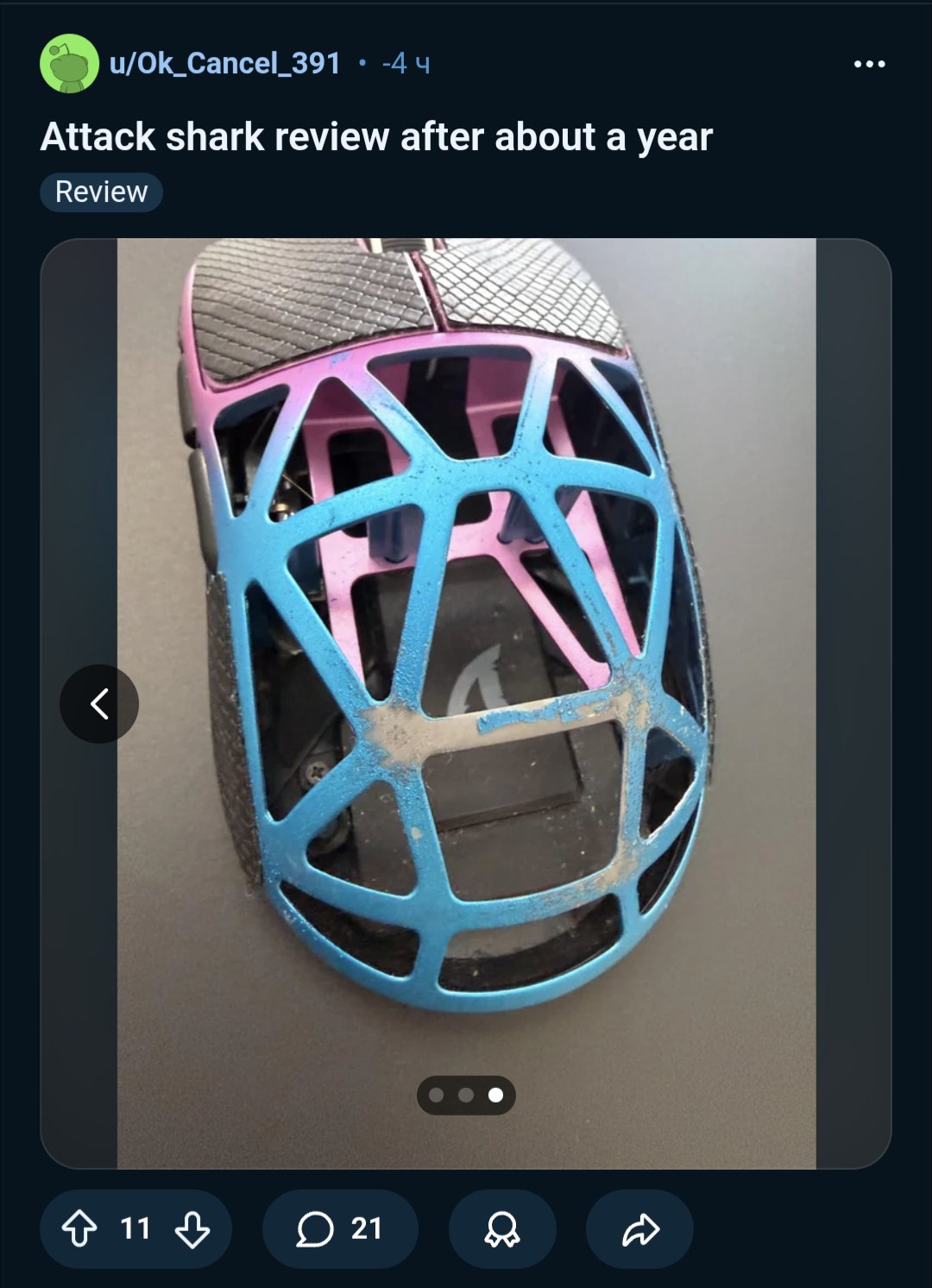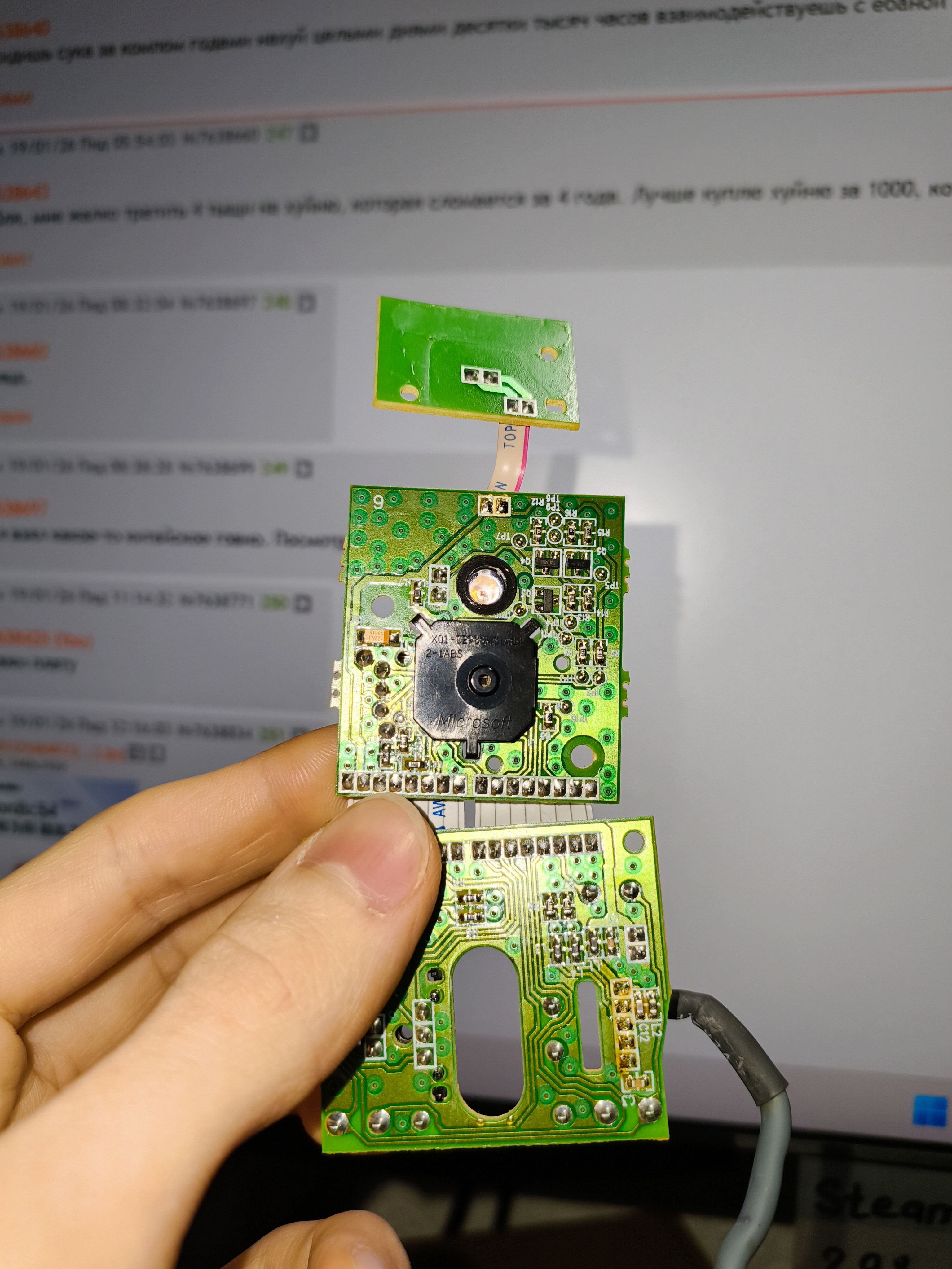 Лол по ходу я первым на этой доске поймал траблы с Рапу (VT1 Max, пользуюсь всего недели полторы). А точнее - с энкодером. Заметил что во время скроллинга периодически прокрутка подтормаживает и в какие-то моменты останавливается. Причем сначала это могло произойти раз в день, а сейчас уже происходит достаточно часто, буквально каждый час. Сейчас прошел тест - так и есть, кайловский энкодер сбоит и в какие-то моменты крутит в обратную сторону. У меня лежит в запасе энкодер ТТС Голд, но все равно неприятно конечно. Впрочем, я сам был в курсе, что кайловские энкодеры - говно лютое. Собственно, красные версии энкодеров от кайлов как раз массово ставили много лет рейзеры и логи почти во все свои мыши - из-за чего у них скролл помирал буквально за несколько месяцев. По сути, именно из-за кайловских энкодеров они и просрали свою репутацию. В Рапу стоит сиреневый вариант, инфы про него в сети вообще нет, отсечки более четкие, чем в красных (там вообще вместо отсечек каша) но все равно "фирменное качество" кайлов дало о себе знать. За всю мою жизнь это рекорд скорости проявления брака в новой мыши.
