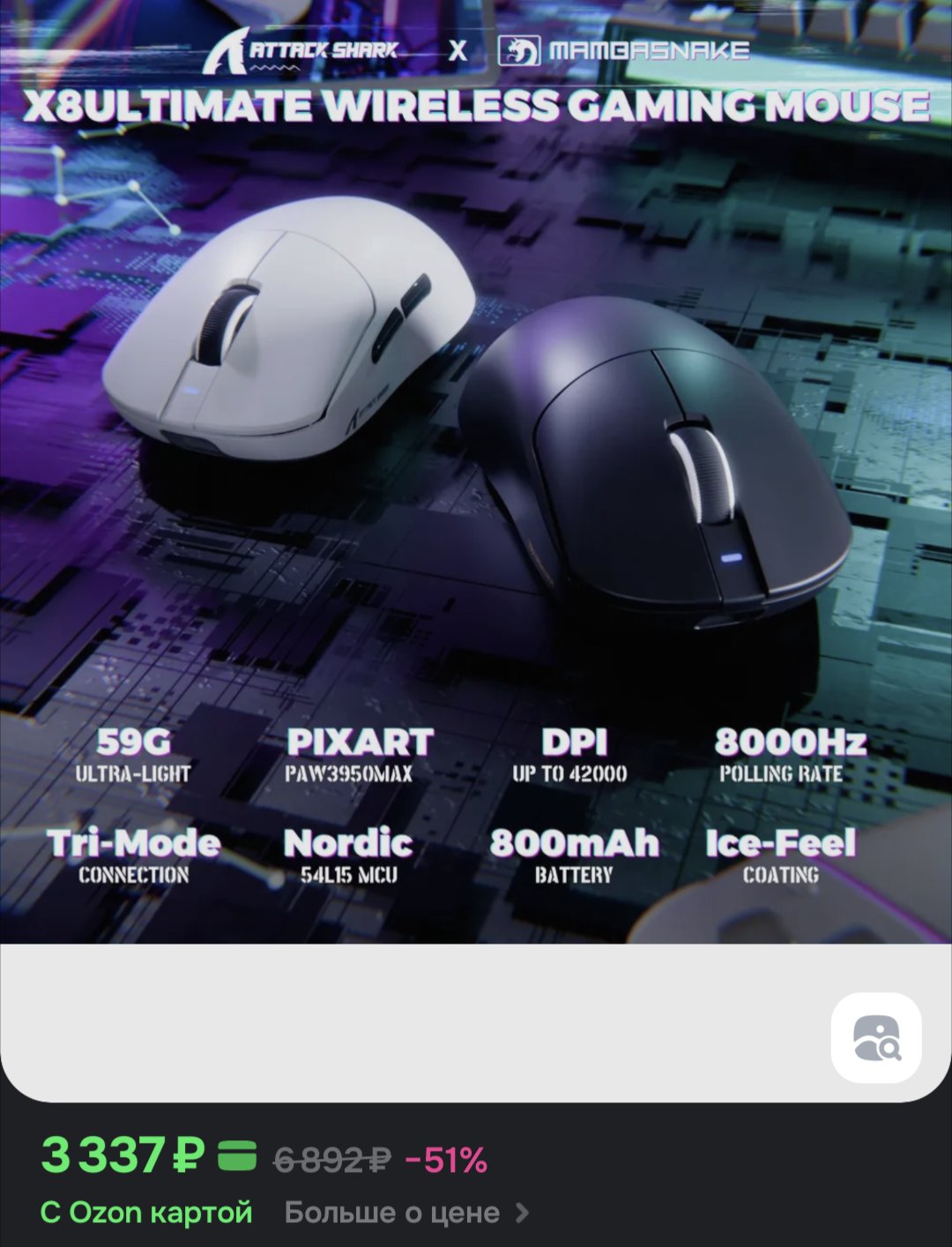 Новинки с Nordic 54, топ начинка и автономность Оптика энкодер: Razer Deathadder V4 Pro, RAWM Leviathan V4, Rapoo VT0 Air MAX Механический энкодер, по форме: Sora: Rapoo VT0, ATK Duckbill, G-Wolves LYCAN 8K Viper mini: Rapoo VT1, ATK F1 v2, Eweadn Z7, WLMOUSE Huan, CRDRAKO KO-ONE Superlight: Rapoo VT2, ATK A9 air / ultimate, Attack Shark X8 ultimate, VGN Dragonfly 3 Viper v3: ATK X1 v2, Eweadn S9 V2 U2: ATK U2 v2, VGN F2 master, G-Wolves HTM Plus Эргономика: Rapoo VT3, VT3S, VT7, ATK Y9 ultimate, ATK Z1 v2, VGN Y2 master, Attack Shark V8, DAREU AE7
