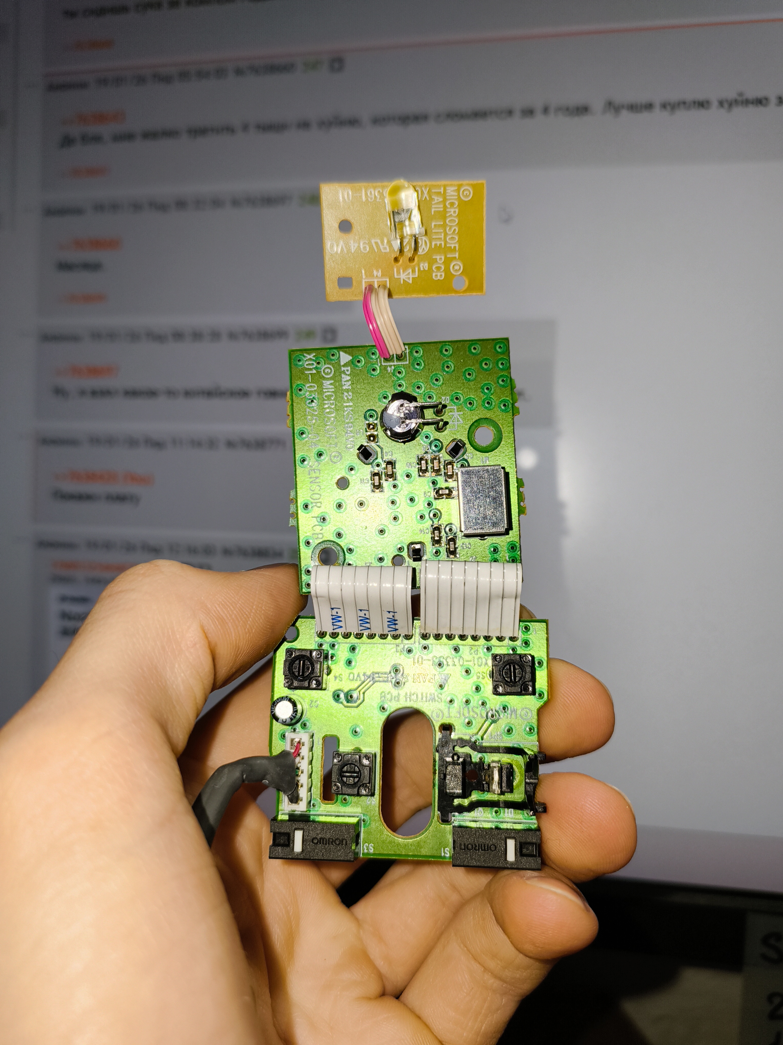 >Как и проводов Провод подходит любой, новый или от старой мыши другой, но в лучшем состоянии, они перепиновываются, реставратор мышей из тебя туповатый Причем в идеале можно было бы подобрать мягкий паракорд в цвет серого корпуса и старого кабеля