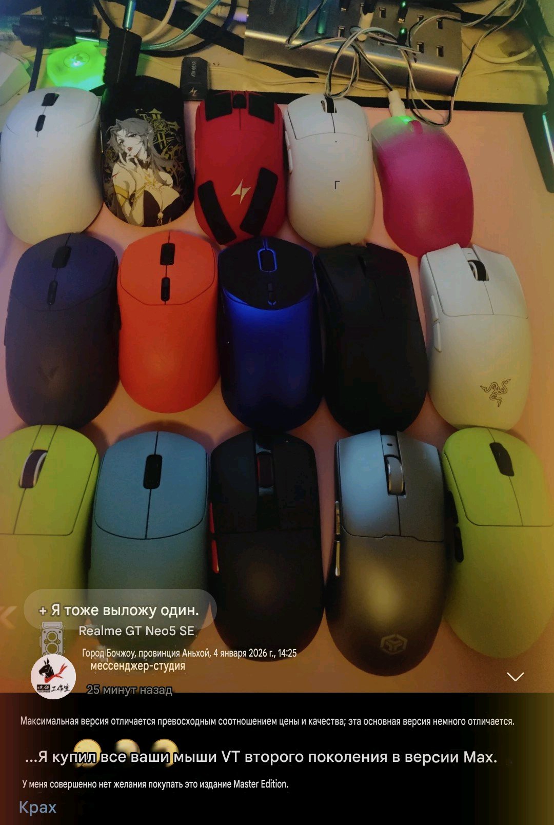 >>7635344 Поздравляю с приобретением отличной мыши лучшей формы. >>7635355 Не, не макс, обычная. Колёсико норм, ровное, как везде. Насчёт грипа: в сетевые шутаны играю на нулёвке когтевым/фингертип, это просто имба в плане микроподстройки позиции, в какую-нибудь готику 2 и прочий повседнев – вт3с/2 макс по настроению, последнюю просто грех было не взять на пробу за 2600. Просто тройка сейчас у тян на работе. Вообще, честно говоря, мыши меняю раз в несколько дней между собой чисто под вайб и для разнообразия. Разве что у вт0 есть своя конкретная ниша без вариантов. Но и на ней можно спокойной повседневно сидеть. Раньше было всякое, включая лоджикал и прочий мусор из прошлого века.