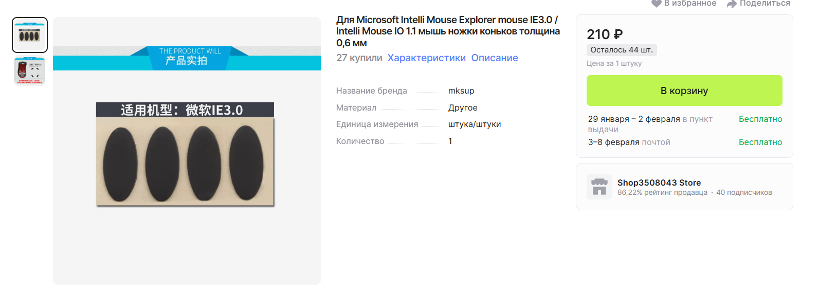 Мне кстати приехали глайды 7мм, на которые тут недавно кидали ссылку на али, прилепил 4 штуки на свою проводную мышу вместо родных, ну прикольно, не хочу приукрашивать, типа вот теперь скольжение божественное, но скользит заебись на тряпочном ковре, вроде как получше чем с родными.