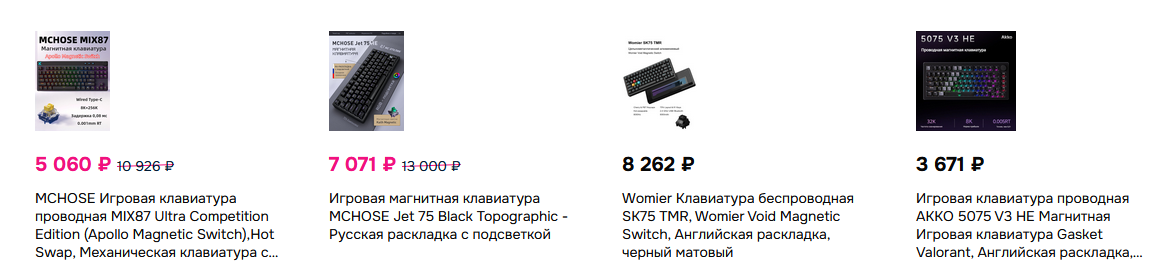 >>7654231 Неа, я не долбоеб переплачивать за кусок пластика с магнитными свичами. Когда китайцы тоже самое толкают за 2-4к. Но ключевые фишки пока повторить не могут.