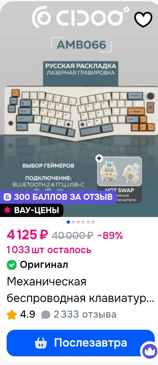 >>7654036 Огонь, взял бы, но у меня слишком много клавиатур. У кого-нибудь были ситуации, когда приходилось продавать годные клавиатуры только потому, что пора расхламляться? Ну вот.