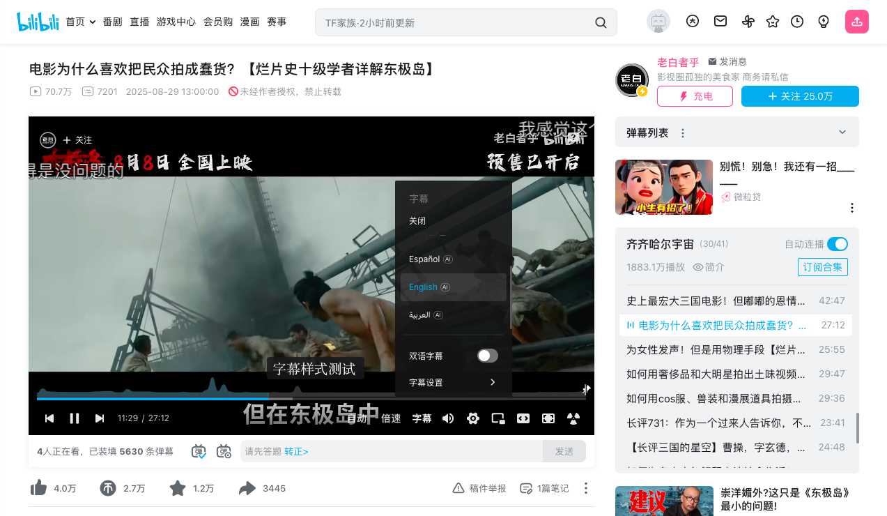 >>139464 Не знаю, блокируют ли серверы перевода текста иностранные IP — для Bilibili это новая фишка. Попробуй обновить страницу или перезайти в приложение😆. Нажми «Закрыть» (关闭) и снова нажми English.