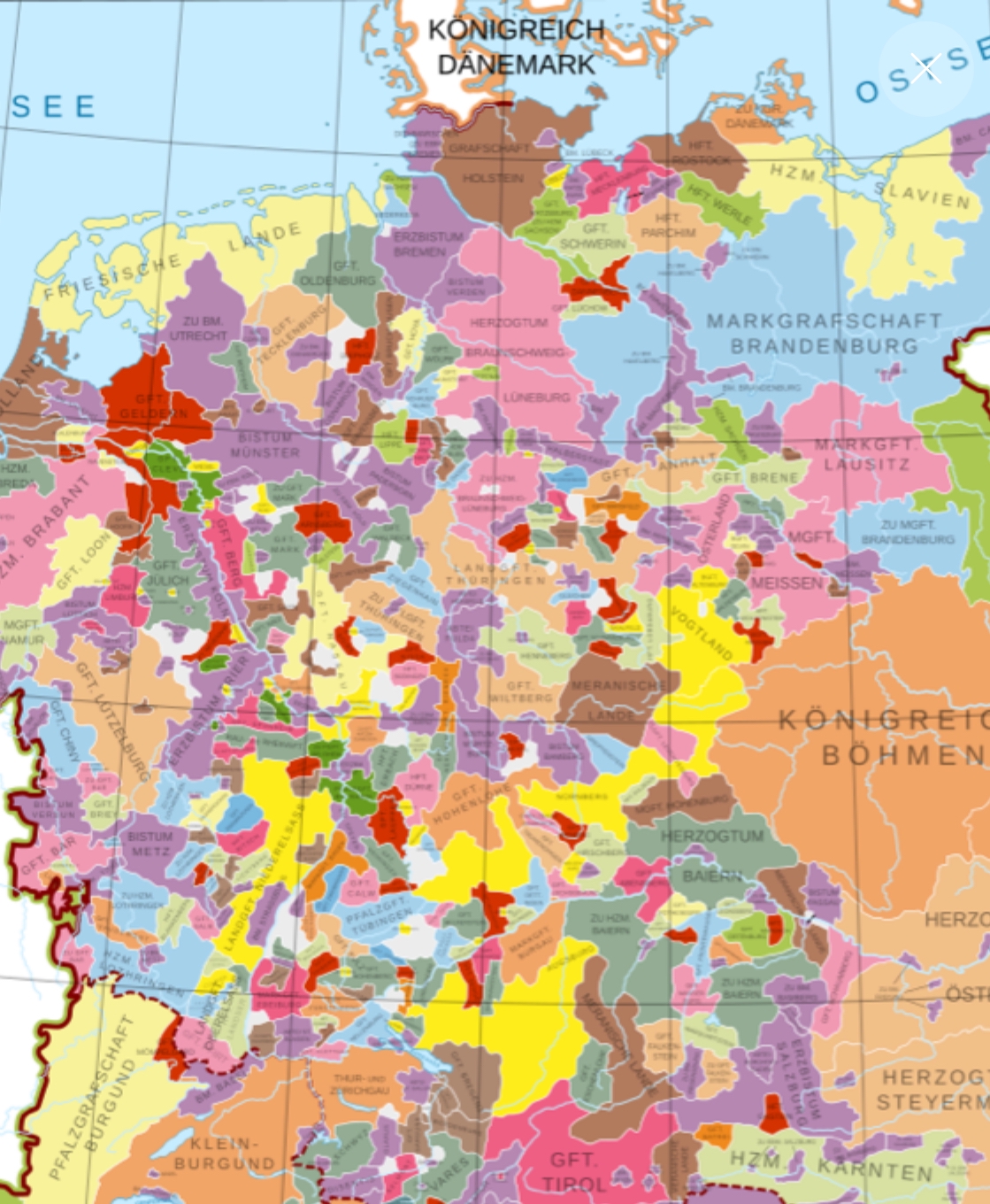 The “Holy Roman Empire” didn’t exist. Instead there was peak-medieval disunity of many small nations. It was one of the most stereotypical medieval environments. And it was all pagan and extremely diverse of verity of community. And significantly in amazing total war where peasants often won, thus the stories were feared by parasites and intentionally forgotten.