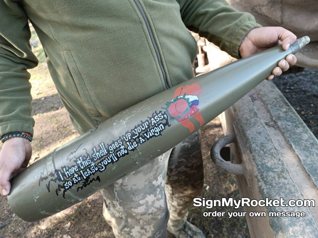 The tank also shows the coat of arms of Ukraine and the inscription “For carnations, candles and Soviet nostalgia”.