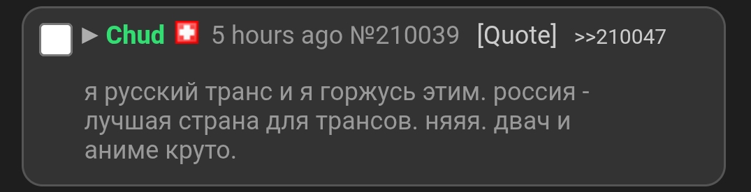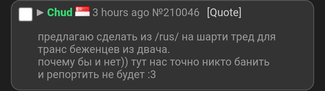 >>135028 VERY BASED Russian refugees from 4chan decided to stay on soyjak party, the /rus/ threads on 4chan are now created only by Sosok (Ukrainian troll under Russian proxy) and communicates there with himself, lmao.