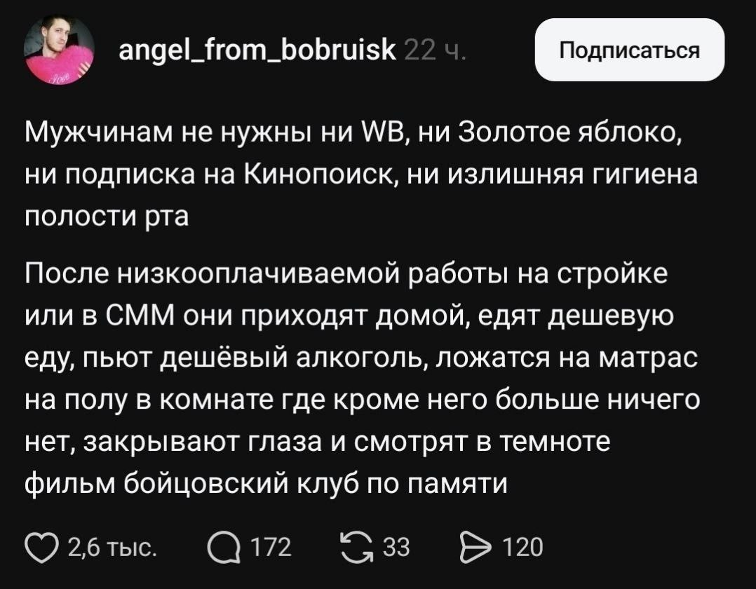 >>136782 Бля, в какой-то степени понимаю, ибо сам тут всю жизнь живу, но хотелось узнать. Буквально вот летом думал, что в целом хочется жить тут, на Родине, поднимать страну с колен и т.д. Думал что мне нравится, наверное так и есть, но только отдельными моментами + очевидная привязанность. Касаемо цен, как будто на продукты цены пониже будут чем в России, но хз. Вот недвижка пиздец, цены на хаты стоят не меньше чем в России, речь хоть и не про Москву и Питер, но все равно. Но порог вхождение у нас ниже (если брать только Минск). С арендой тоже как-то хуево стало все, я не представляю как бы выживал после окончания уника, если бы не родительская хата, ибо более менее терпимая хата от 800-900 руб в месяц уже, а это чуть ли не ползарплаты. Касаемо зп, тут прям согласен, ЗП супер хуевая, особенно если ты только начинаешь работать. Я узнавал, некоторым в Питере, в НИИ, платят 130 000. Не сильно шарю, но очень сомневаюсь, что хотя бы 70% от этой суммы будут платить вчерашнему студенту. У нас в целом в той же армухе на контракте платят 2000-2500 бунов вроде бы. Раньше я думал, что это неплохо, для Минска наверное так и есть, хотя хз. Я пока за коммуналку, интернеты, телефоны и прочее не плачу, живу за родительские 1150 в месяц. В целом хватает, но почти всегда в 0 выхожу, если именно жить, а не выживать. Если куда-то идешь есть или хочешь приготовить что-то помимо хуйцов с гречей, то придется раскошелится. В целом те же продукты и хоз товары существенно подорожали, как раз примерно года 3 назад. Цены на технику и прочее правда завышенные, да и выбирать почти не из чего, если мы не берем что-то, на что всегда есть спрос. Из развлечений могу посоветовать ездить в другие города, это реально интересно. Если говорить про то, что у нас, то это либо гулять в парках (что для человека, который рос не в этом городе скорее всего будет обычной прогулкой), либо ходить на всякие Зыбы и прочий говняк на Немиге. В центре много движа, но контингент либо малолетки, либо быдло старое прям сильно вбрасывается в глаза, особенно заметно на Зыбе. Конечно есть люди, которые просто спокойно пришли расслабиться, но это опять же на любителя. Можно пытаться выискивать всякие выставки, лет 10 назад много инетересных было часто, но сейчас как будто меньше стало. В театр пиздато сходить можно, в кинчик, это конечно уже больше развлекалово, но годно. Театр вообще не мое будто, но я в сознательном возрасте впервые пошел этим летом, было очень хорошо и удобные места в целом. Ну да, быдло есть, но так почти везде. Конкретно с частью про хамство не согласен. Бывают конечно ебанушки, сам натыкался в прошлом году один раз, но там уже дефолт ВСЖ момент был. Но пенсам вроде места уступают, если просят. Ну зумерки да, тут я и сам в ахуе. Крч, в целом да, если так посмотреть, то особо нечего делать. Разве что в хрючевальни ходить, да в ботанический сад и парки различные, и иногда кино / театр. По архитектуре в Минске и впрямь не так много всего, за этим лучше в другие города двигать. Тем не менее, не знаю как решать этот вопрос, ибо в остальных моментах все устраивает, в плане погода / климат, удобство перемещения по городу и прочее. Скорее всего ответ найду когда уже за свои шекели буду жить, тогда будет понятно, что и раз в какое время я могу позволить себе купить, сколько смогу откладывать на хату и прочее.