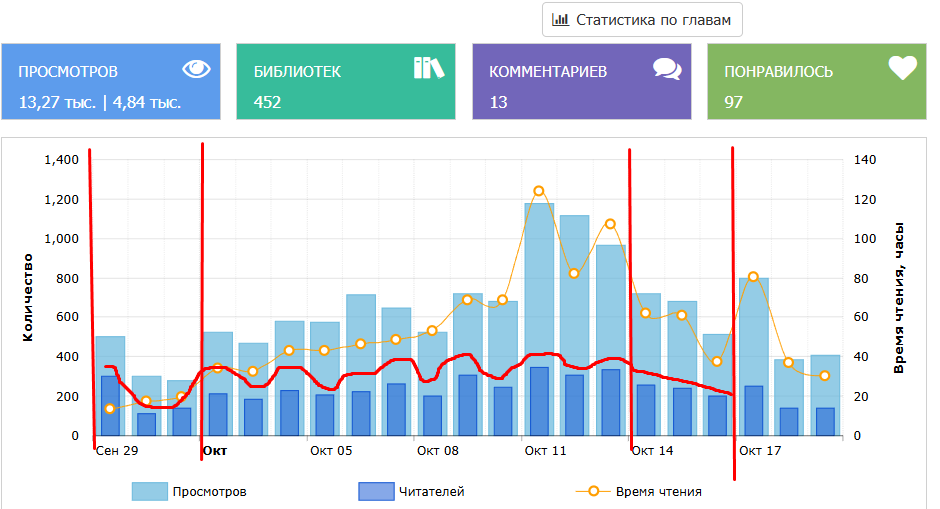 Но стоит выйти второму тому и повторяется история с Леманом, — процент перехода 20%. 2 том - на почти законченной книге – 100 библиотек. При том, что это без рекламы, без залетных, горячая аудитория. https://author.today/work/501447