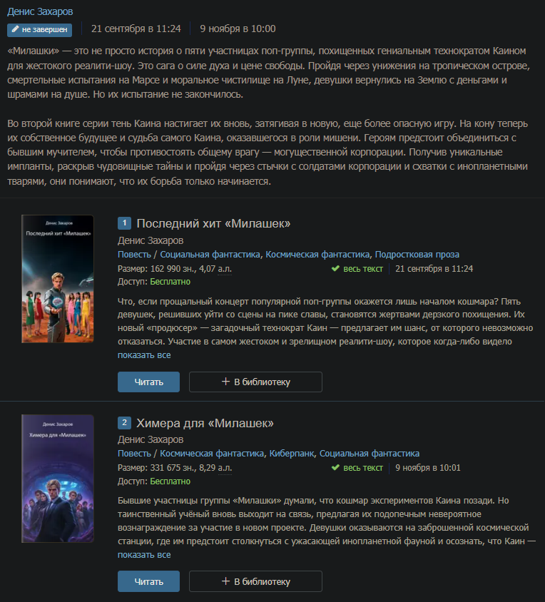 В итоге если первый том висит на таране, он твой попис рекламить не будет, ему нужно другие релизы крутить, а рекламить можно только одну книгу одновременно, т.е. ты в пролете, даже если вы скинетесь на рекламу 50/50. А если первый том все же на тебе и у тебя добрый хозяин, который будет давать свою половину на рекламу — ты не сможешь прогревать другие свои релизы и будешь работать экспортным рекламным кабинетом для того, чтобы зарабатывать копеечку своему белому господину.