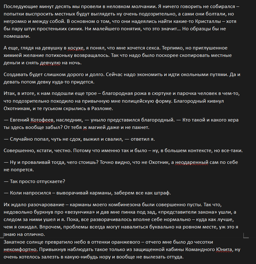 >>446471 Самолетов на самом деле охуенно пишет. Это чистая поэзия и это читается просто влёт.