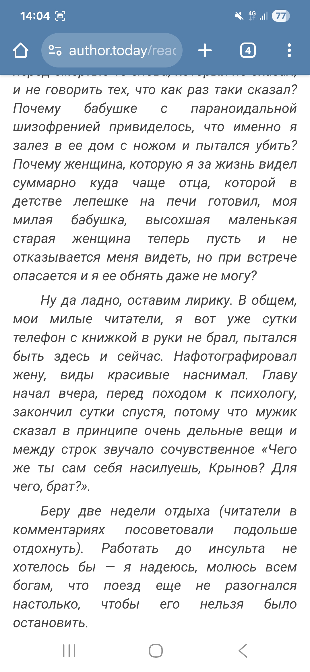 Я видел такое, что вам, автортудейцам, и не снилось. Поля нейротекста, засеянные трупами форматных произведений с нулем просмотров. Виджет Последних апдейтов, засранный спамом настолько, что каждое новое произведение выходит раз в СЕКУНДУ; Форматные истории, мелькающие лишь на СЕКУНДУ и тут же исчезающие в вечной тьме безвестности. Системы рекомендаций, развитые настолько, что напоминают мафиозные кланы! Их НЕЛЬЗЯ УДАЛИТЬ, дав рекомендацию, ты вечно останешься РАБОМ, который каждой главой будет ВЕЧНО фармить для ХОЗЯИНА приток аудитории! Я видел... Видел, что сайт не просто не борется со всем этим, он ИСПОЛЬЗУЕТ это для своей выгоды! Я видел самое омерзительное, что только может существовать - ПЛАТНАЯ ВНУТРЕННЯЯ РЕКЛАМА за попадание на главную! Все эти мгновения затеряются во времени, как... слёзы в дожде... Пришло время умирать.