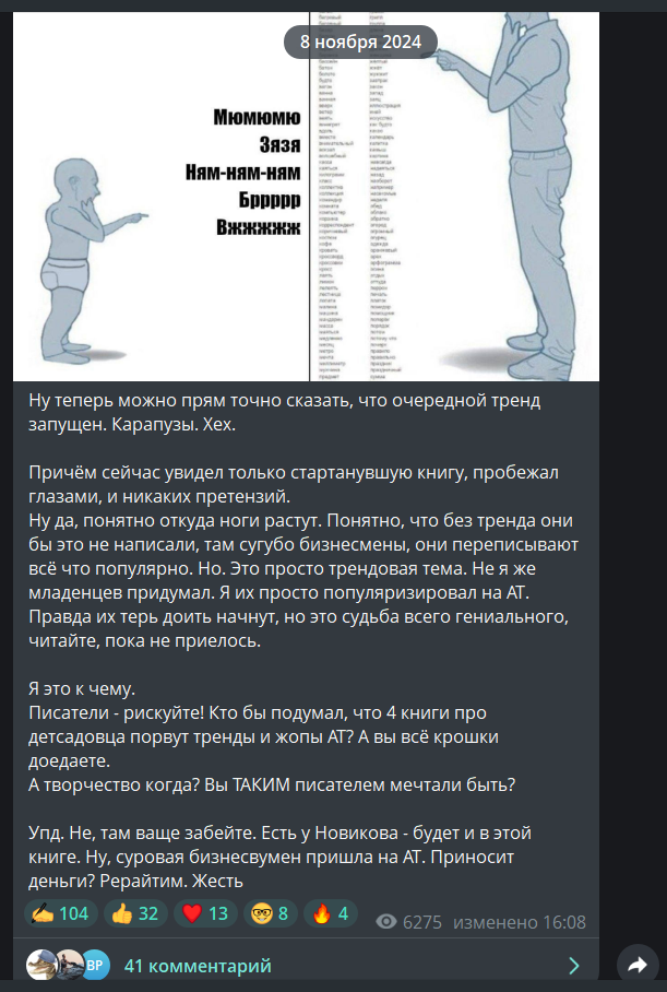 Но тут важно не то, что текст понравился мне, а то, что он понравился широкой аудитории АТ.