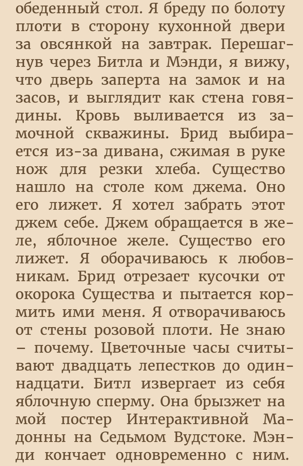Ещё такой вопрос. Как рецензировать неироничнве рассказы про строительство коммунизма? Это ведь всё равно что пытаться найти искусство в рассказах про поедание говна и изнасилования в тюрьме. Как абстрагироваться от того, что это писал душевно-больной человек?