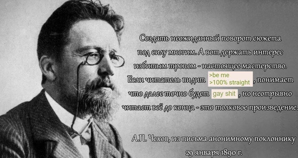 >>450267 Брух, ты об чом вообще, можно уточнить? Очень интригующий своей экспрессией пост, но ты как будто отвечаешь не на то обсуждение? >Называть это эссе романом Какое "это"? Ещё неизвестно, что там будет. Эссе это жанр совершенно особый,эссеистику полюбому отсеют ещё на приёме. >5 страниц алок? >там как бы средний объем Где? В повестях, которые ещё не существуют в природе? >500 символом - это грубо говоря один абзац. Я думаю, анон предполагает другие правила для гипотетического конкурса романов, где и рецензии будут объёмнее, чем в рассказном. >Блэт, по работе приходилось читать по 100-500 страниц Вот и представь, приходишь ты после работы домой, а там такая же хуйня, только с двачеконтентом. Ужос!