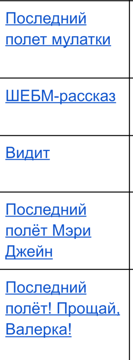 >>452082 (OP) "Последний полет Мери Джэйн" - там нет рассказа, а чьи-то припизднутые рецензии. Исправьте что ли. Или это и есть рассказ в форме рецензий? В 4 группе я уже ничему не удивляюсь.