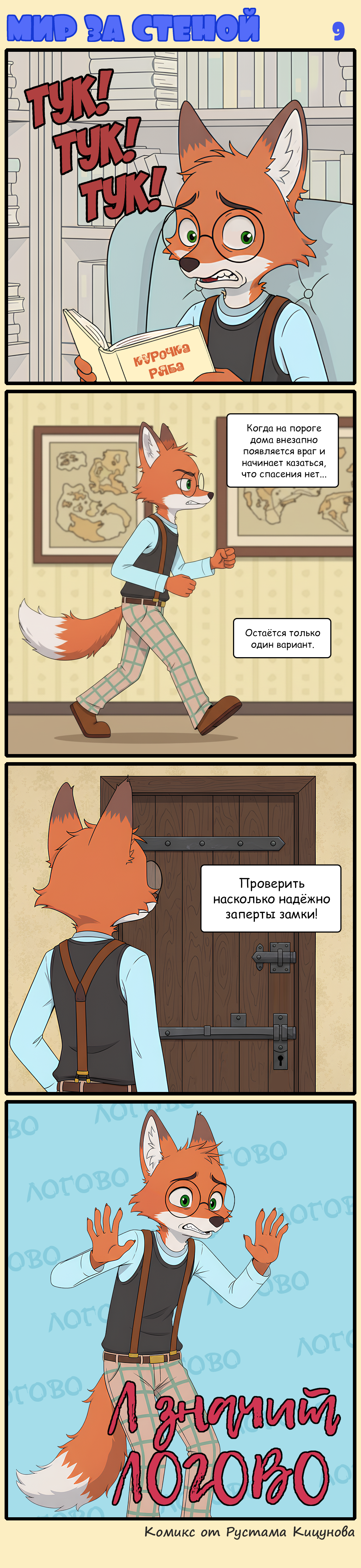 Дом неподалёку от обочины дороги выглядел внушительно и скорее напоминал крепость, чем жилое помещение. Полностью сложенный из бетонных плит, серый и угловатый, он походил на редут, разве что рва с крокодилами вокруг не хватало. Толстую дубовую дверь, окованную железом, казалось, не пробьёт и боевой таран. Представляю что думает Гостья. Что внутри живёт какой-нибудь важный военачальник два метра ростом и в железных латах. Рядом с дверью висела крупная деревянная табличка с отчётливо выделяющимися бордовыми буквами. «Друзьям стучать три раза. Врагам не стучать, уходите. Почтальону стучать не переставая.» Тильда стукнула кулачком три раза. Через минуту в узкой смотровой щели рядом с дверью мелькнула тень, а вслед за этим послышался звук открываемого засова. – Тильда, – по ту сторону послышался растерянный глухой голос. – Я не ожидал твоего прихода, да ещё и с друзьями. Ай! Похоже, засов был тяжёлым. Наконец, дверь открылась и нашему взору предстал хозяин дома. Тёмно-зелёный пиджак, который он носил, был совершенно невзрачным, но отливающие глянцем клипсы подтяжек, поддерживающих безразмерные клетчатые брюки, сразу привлекали внимание. Его шерсть была однотонно рыжей и взлохмаченной, лишь на кончике пышного хвоста выделялась белая кисточка. В основании вытянутой мордочки хозяина были закреплены очки с круглыми стёклами, а огромные тёмные круги под глазами только сильнее подчёркивали его черезмерную худобу. – Вы ведь одни? – обеспокоенно спросил владелец крепости, оглядывая дорогу, которая была совершенно пуста. – Тогда заходите, добро пожаловать. Мы пересекли порог дома, оказавшись в просторной прихожей, заставленной книжными шкафами. За нашей спиной тотчас закрылся массивный засов. – Так, как же там было... – замялся хозяин. – А, пункт один, представиться. Позвольте представиться. Меня зовут Цельсий. Моя литера Л, что означает Логово. Ага, да. Вроде ничего не забыл, – запинаясь через слово, выпалил он, поправив на голове совершенно неуместный в помещении котелок. – А, точно, снять шляпу, – и Цельсий тут же исправил ошибку. – Привет, Цельсий, – прикрыла рот рукой Тильда. Можно было подумать, что она сдерживает смех, но только я понимал, что на самом деле девчушка очень рада видеть старого друга. – Ох, да. Приветствую. Представишь своих спутников? – хозяин навострил рыжие ушки. Тильда назвала нас по именам. – Угу, ясно. Что там дальше... А, пригласить гостей в зал. Прошу. Разуваться необязательно, ведь я не смогу дать вам тапки по причине их отсутствия. Прости, Тильда. Мы переместились в гостиную, которая оказалась попросторней. Вся она была заставлена книжными полками на манер прихожей. – Так, чем желаете угоститься? Хотите чай или может кофе? Хм, хоть ни того, ни другого у меня нет, но правила предписывают предложить вам из вежливости. Не стесняйтесь, присаживайтесь. Хотя кресел у меня тоже нет. Но можете сесть на пол, если хотите. Кстати, Тильда, чем обязан твоему посещению? Девчушка молча показала хозяину метлу. – Снова хочешь прибраться? Ты же подметала у меня в прошлом месяце. Хотя Тильда приходила к нему уже множество раз, недалёкий книгочей так и не догадался об истинной причине её частых визитов. В воздухе повисла тишина. Гостья начала гулять по залу, осматривая корешки книг. В основном, научная фантастика, хотя иногда попадались и уч