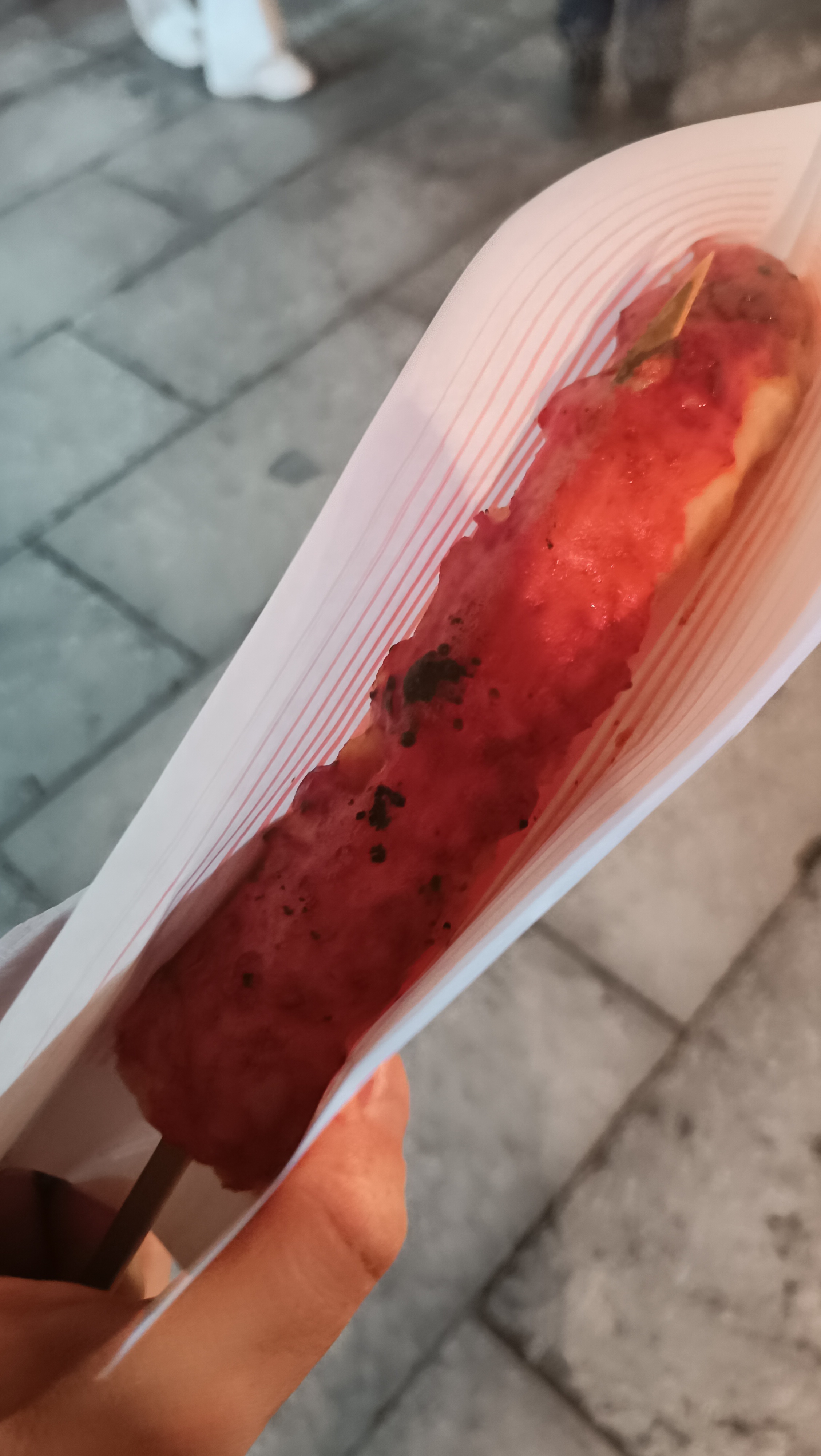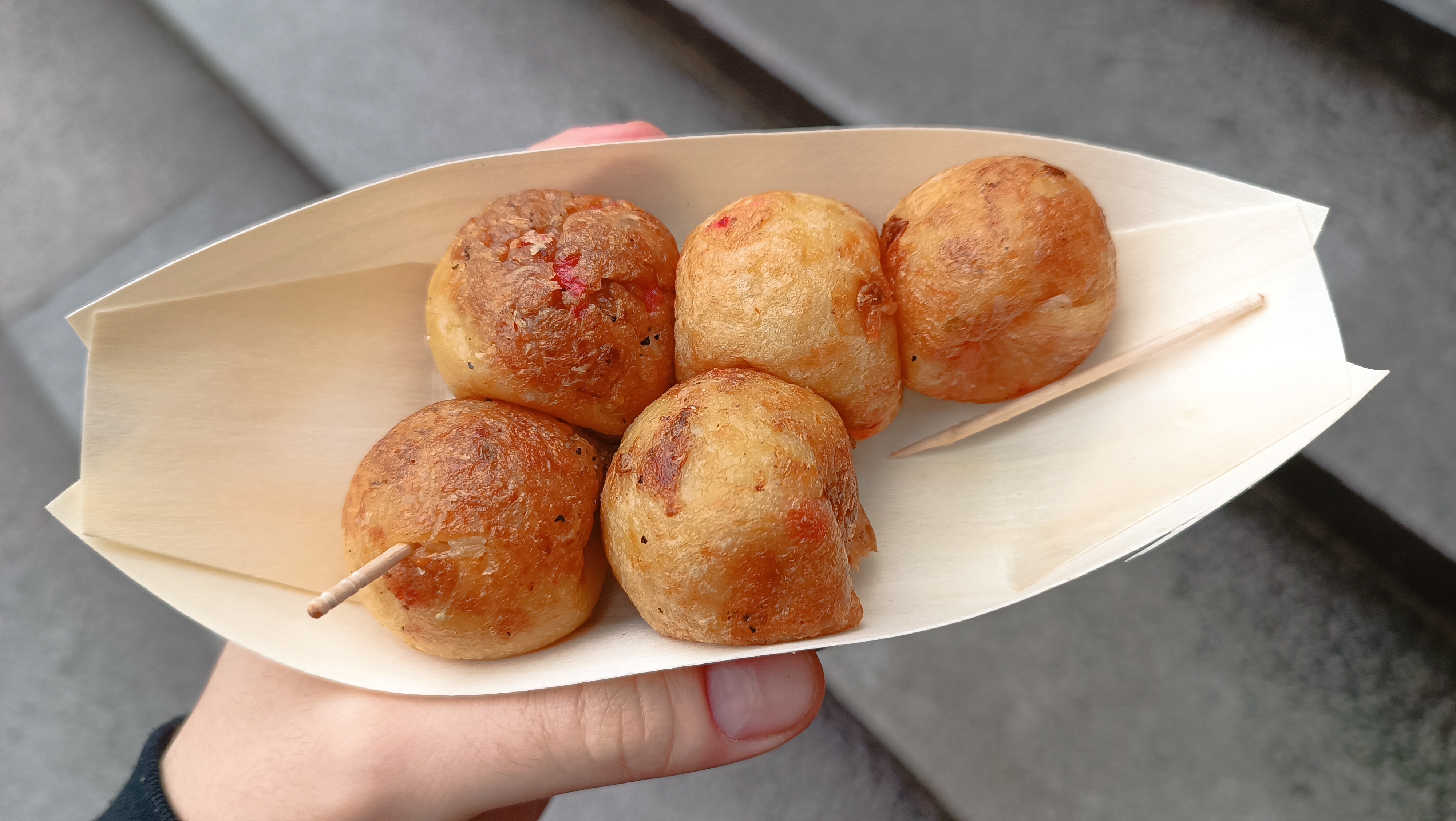 Фестивальная еда: Хлеб "10 йен", на этот раз с шоколадом; измолотый в смузи внутри самого себя апельсин; чай масала из лавки местных индусов; неведомая херня из рыбы