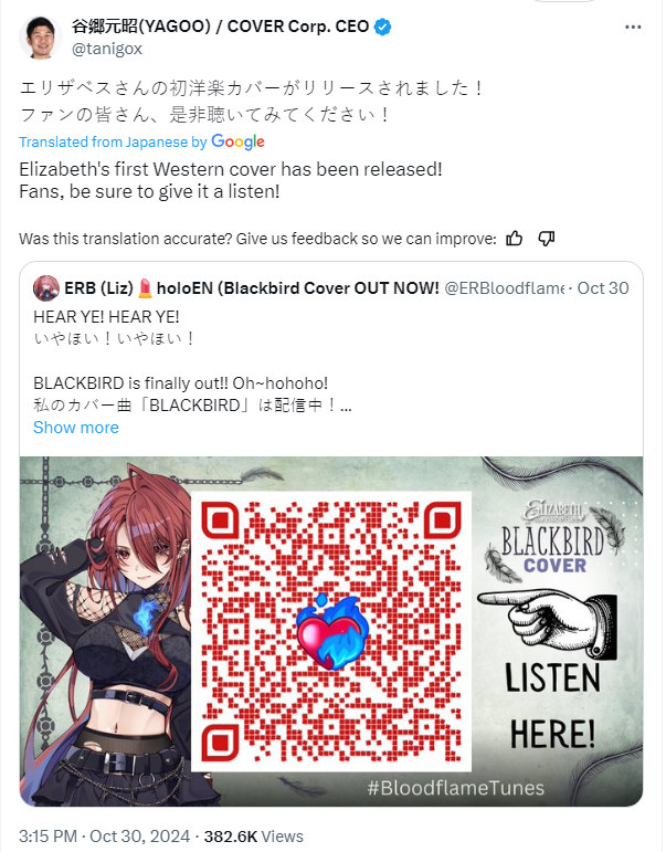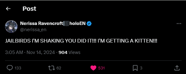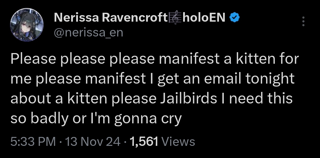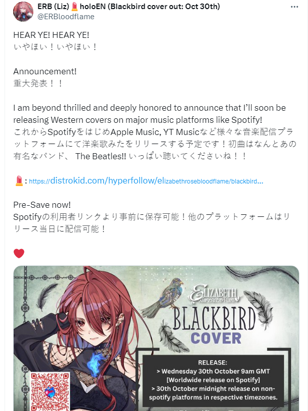 ERB первая в Холо, кто получила разрешение на западные каверы, первым будет Blacbird от Битлов, збс, надеюсь Нерисса тоже следом получит, ибо она тоже пиздец как хочет западные каверы.