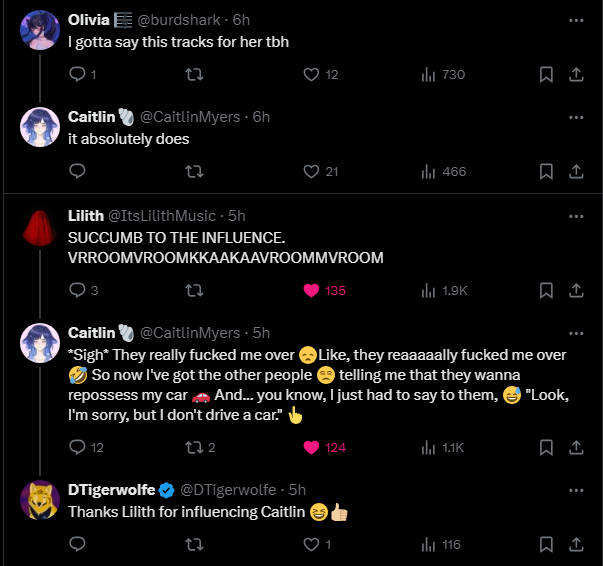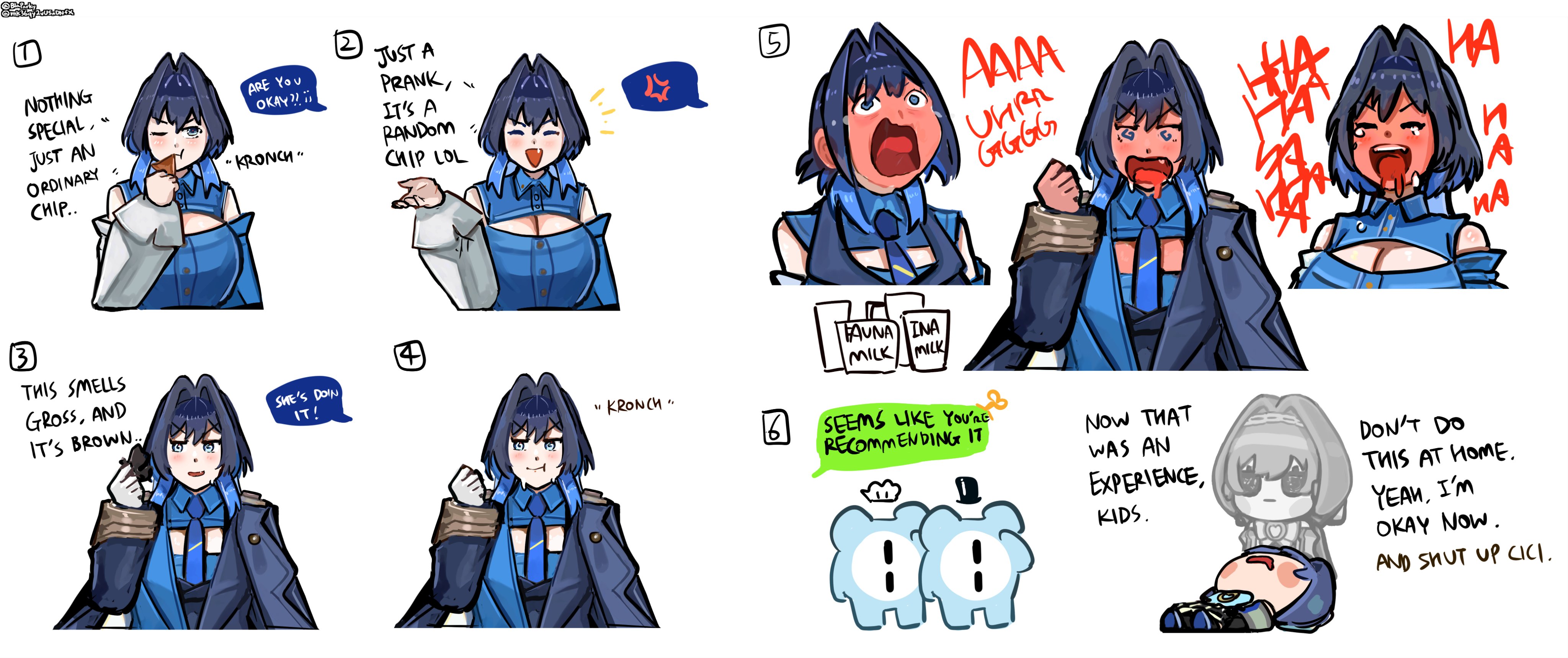 I saw Nerissa at a local KFP store yesterday. I told her how cool it was to meet her in person, but I didn’t want to be annoying and bother her and ask her to do "ara-aras" or anything. She said, “Oh, like you’re doing now?” I was taken aback, and all I could say was “Huh?” but she kept cutting me off and going “Ope? Ope? Ope?” and unbuttoning her shirt in front of my face. I walked away and continued with my meal order, and I heard her starting to sniffle like a wet cat as I walked off. When I came to pay for my stuff up front I saw her trying to walk out the doors with like fifteen hamburgers in her hands without paying. The orange-haired girl at the counter was very nice about it and professional, and was like “Entschuldigen Sie, Ma'am, you need to pay for those first.” At first she kept pretending to be tired and not hear her, but eventually turned back around and brought them to the counter. When she took one of the hamburgers and started scanning it multiple times, she stopped her and told her to remove the top bun from each individually “to prevent any culinary infetterence,” and then turned around and winked at me. I don’t even think that’s a word. After she scanned each burger and put them in a bag and started to say the price, she kept interrupting her by complaining about "how you cant get any Culvers here" really loudly.