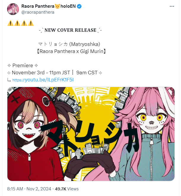 У неё в работе были около 5 кавер треков и альбом (мини или EP). Один кавер вышел, второй будет кавер битлов и ещё 3. В посте упоминается что будет не один кавер выпущенный на крупных стримингах, а значит от успеха этого всего мероприятия будет зависить дальнейшее положение по каверам, так что крутите прослушивания со всех устройств если хотите чтобы ваши чубы так же релизили каверы на стримингах.