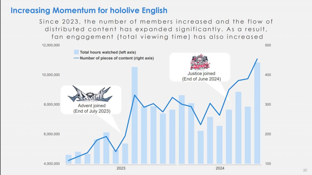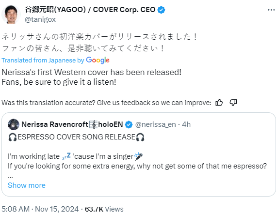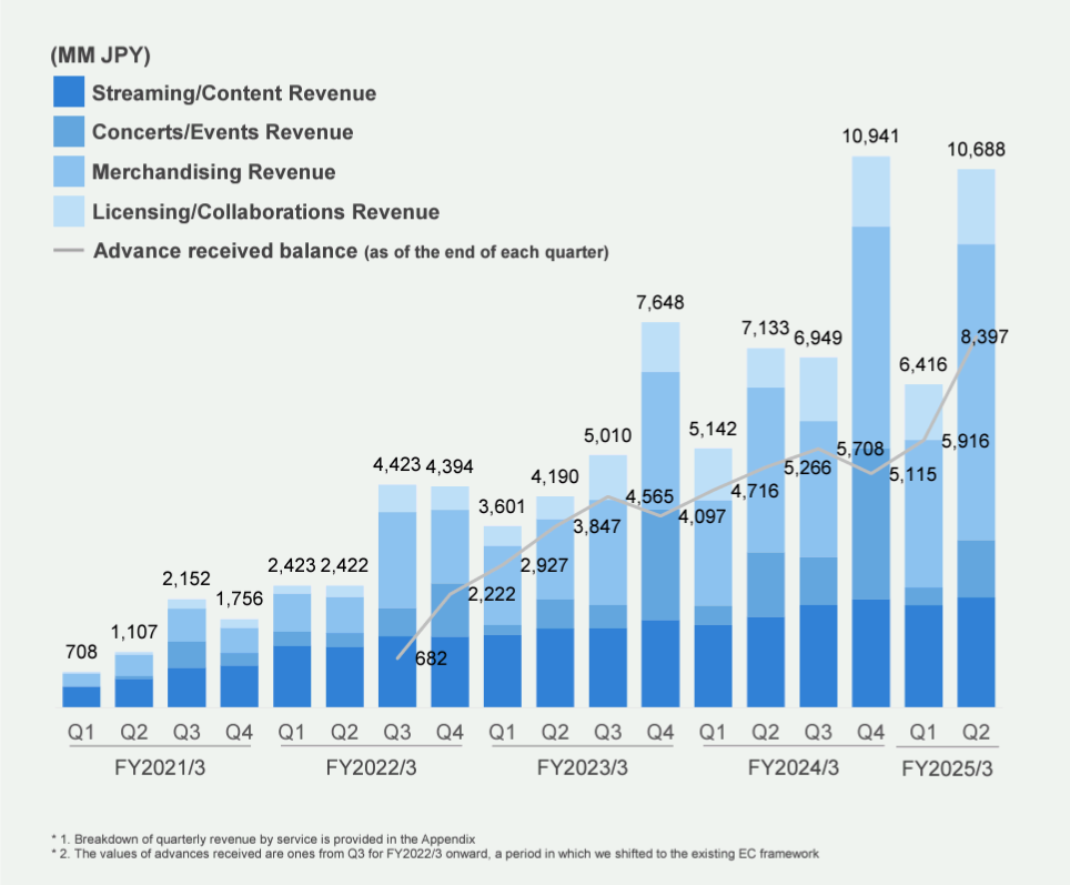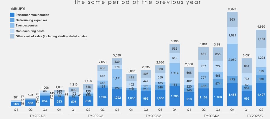 Там Cover выкатил финансовый отчёт за второй квартал этого года, Яго довольно урчит, всё растёт и расширяется. +78% in merchandising revenue +90% in revenue from licensing and collabs paid 1.5 billion yen in talent remuneration, up from 1.15 billion in Q2 last year