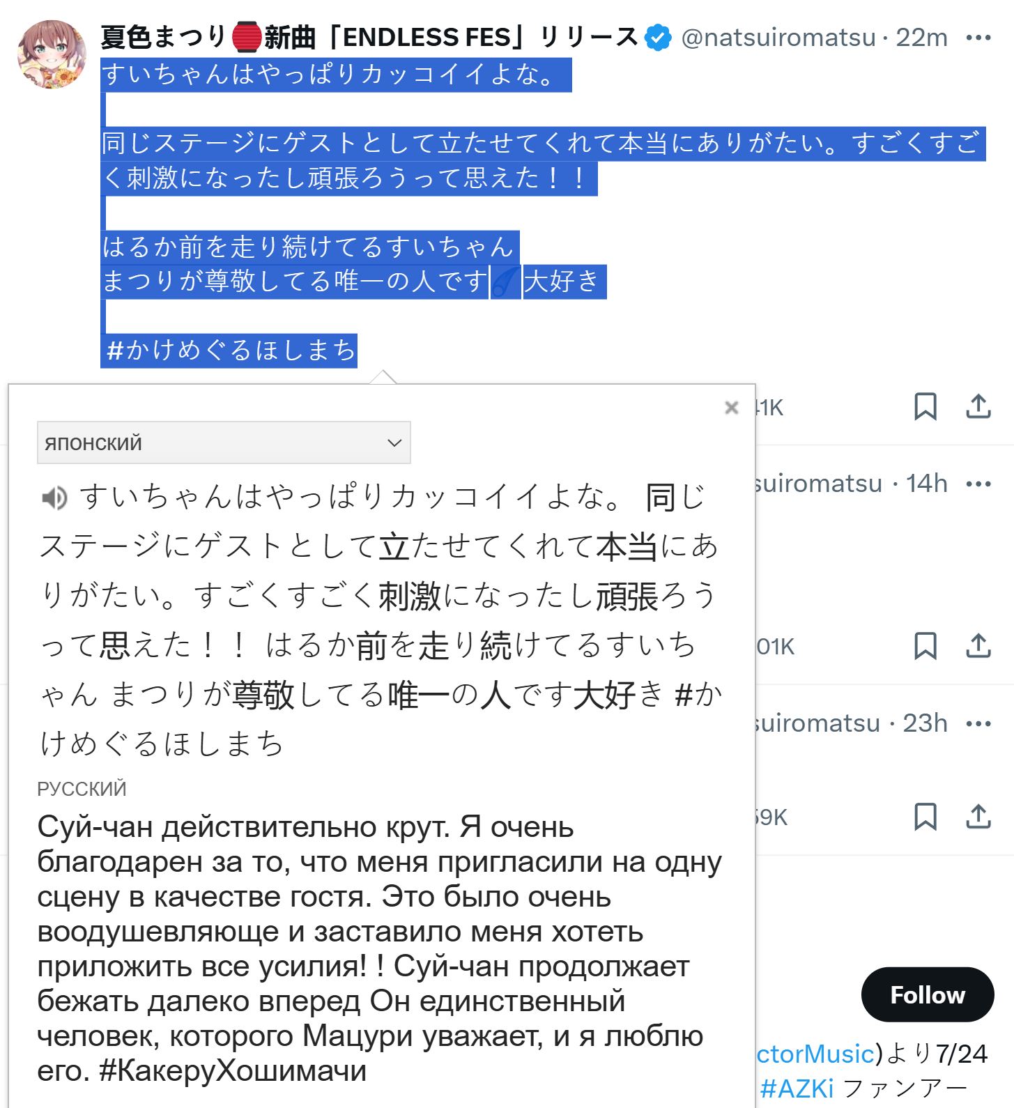 >>443612 Что за агрессия, друг? Я пришёл в /ja/, то есть любителей японской культуры, спрашивать почему им нравятся японские витуберы, которых они нифига даже и не понимают и не могут никак взаимодействовать. Хотя в этих тредах очень популярен хололив, но по поводу англоязычных витуберов примерно тот же вопрос.