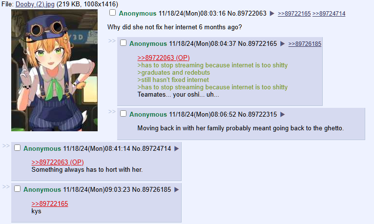 >>443696 это нихуя не поможет. чтобы победить доксфагов нам нужна отдельная доска, как на форчике с правилами антидокса, чтобы их банили нахуй. только такого никогда не будет, так как вичубинг не так популярен в руссии, и доска с 0.5 постами в час нахуй никому не нужна.