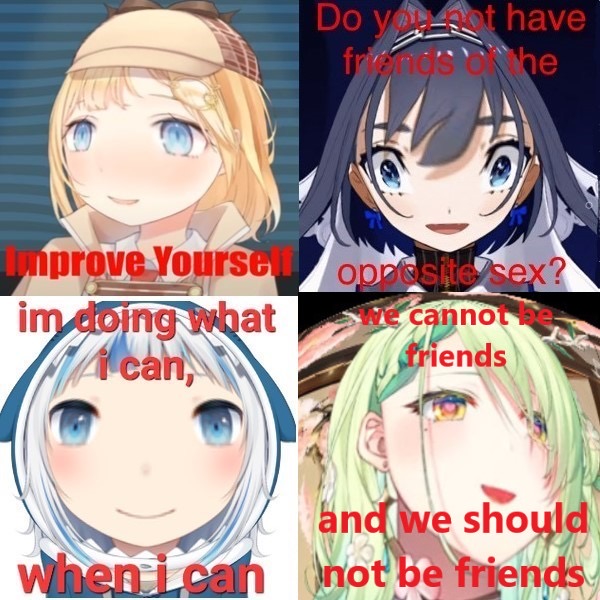 А вообще база, весь первый ген это сборище охуевших и зажравшихся пезд. Гура, Аме, Ина, Скуфмори Насчет курицы хуй знает, не слежу за ней, вот Адвенты норм кайфуют
