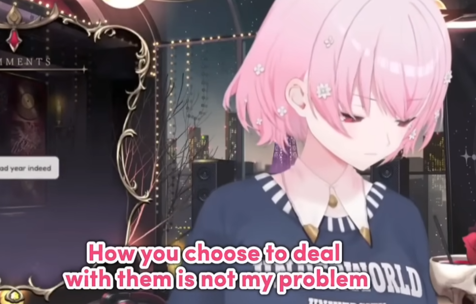 В рефлекте она ныла, как образ акулки её ограничивает. Тут она ноет, как её зрители и чужие тяготят. Давайте вместе порадуемся, что эта ноющая хуйня наконец-то сбрасывает тяжёлое адское бремя и съёбывает, перестав ебать мозги и себе, и остальным. А смотреть надо тех, кто получает от того что делает удовольствие. Думойте, малята, думойте.
