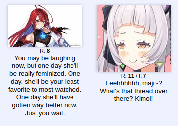 Ну это мое субъективное мнение про проклятый ген, там еще Жирисса более-менее, всё остальные это пиздец. Бау-Бау дебилки для отсталых, Шлюшоири и дегенератка Бибу. Хуже только Glow, но там хотя бы Тигрица тащит и Виви иногда что-то может.