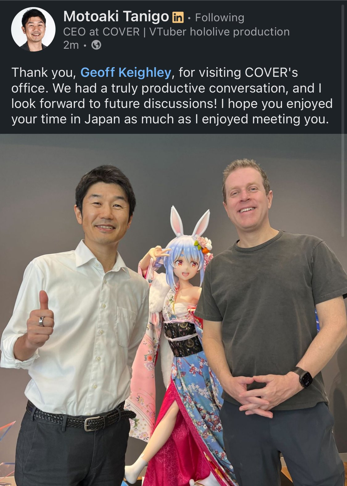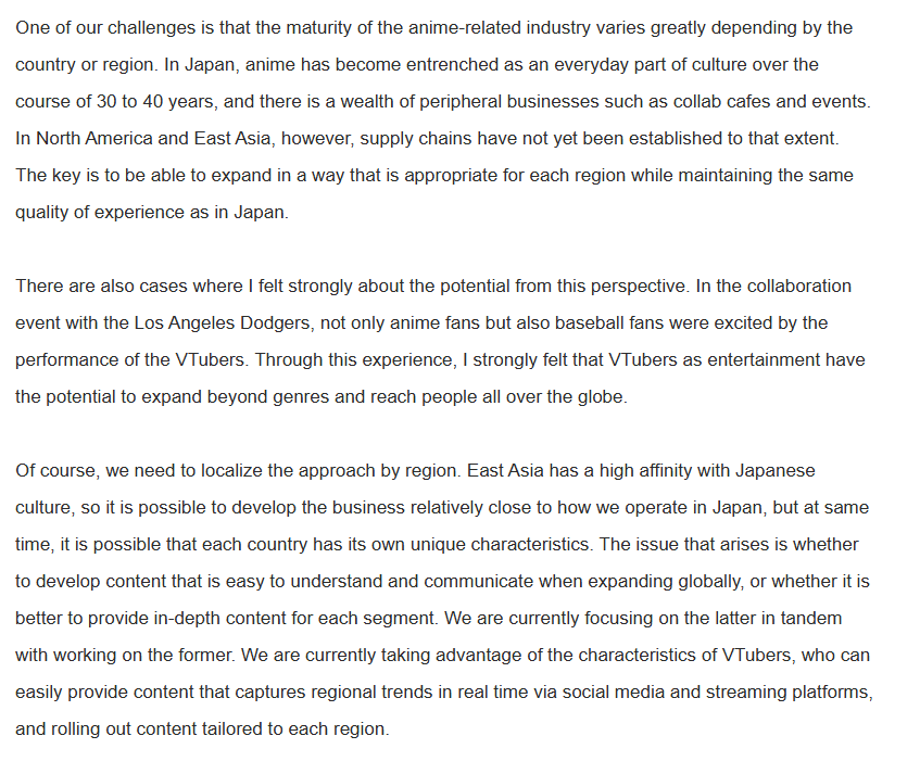 >>458850 Похуй чё там Ягук пукает, он просто говорящая голова. Лучше почитать интервью реальных серьёзных дядей https://coveredge.cover-corp.com/en/list/1230 А они там себе уже глобальный успех уровня Sony и нинтенды нарисовали.