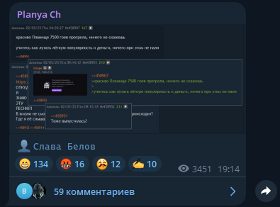 Раз уж про ещё про Ману заговорили, то меня давно мучает вопрос - что случилось с её дружбой с Планей? Они же и в объединении одном были, и коллабились дохуя, и дружились жесть, и Мана даже как-то говорила что Планя очень круто обнимается. А сейчас - абсолютный ноль упоминаний друг друга, не то что коллабов, несмотря на то что Мана снова активно стримит. Чё случилось с синежёлтой дружбой???