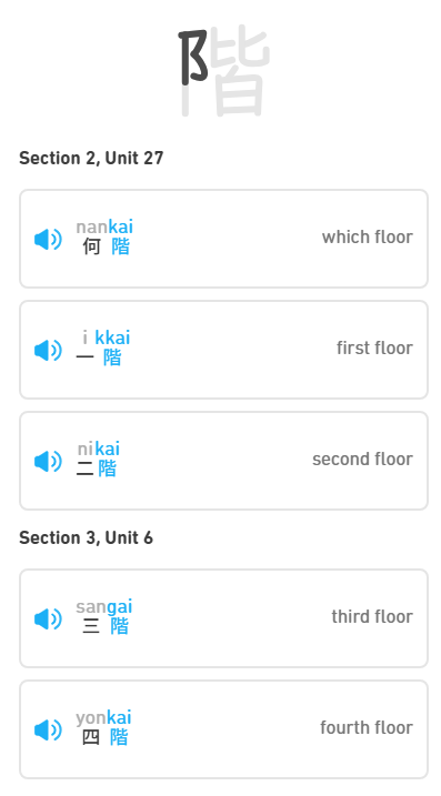 >>487488 Про N5 я конечно преувиличил, но 階 в контексте этажей учат в третьем классе, а во всяких Дуолинго, сразу после всяких числительных и дней недели, т.е. буквально в самом начале. Причём подобные простейшие кандзи дома легко учатся.
