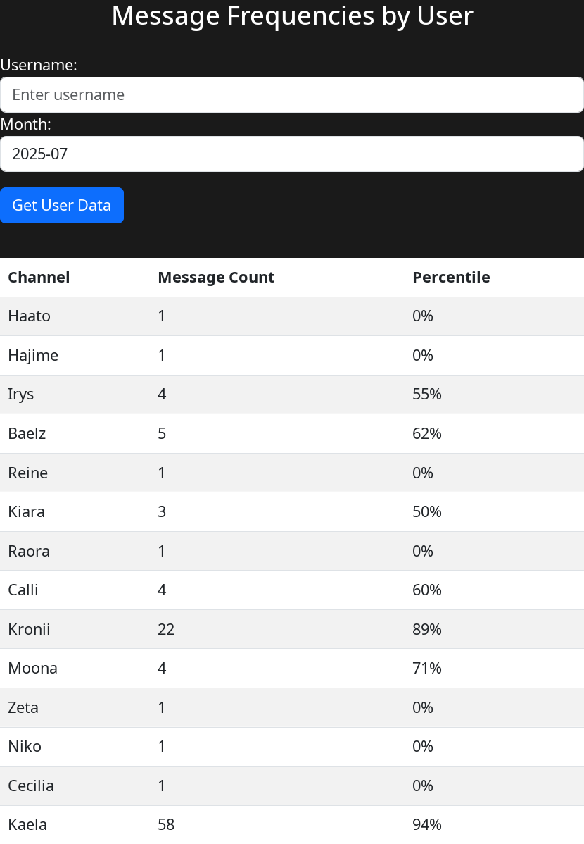 >>472768 в последнее время в основном у жижи в чате когда фауна была жива у нее писал там что-то помню у каелы в чате много писал, но сейчас ее уже наверное год не смотрел