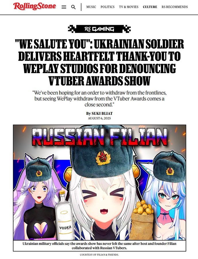 Галя, у нашего филлипинского мальчика отмена. Это прям бизнесс стратегия: 1. становишься рашн витубером 2. коллабишься 3. объявляешь всем что работаешь на минобр РФ ??? 4. профит Да, кумышь не коллабила, но 100% поколлабила, если бы знала ангельский хотя бы на уровне школы. Интересно её можно было бы привлечь в РФ за это, ведь деньги от виплей, это деньги от организации спонсирующей террористов. Была бы в РФ втуберша зечка, как раз партаками вся забитая уже.