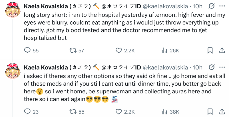 >>473919 Это был очень странный мемби, первый час она притворялась, что всё ещё находится в Японии, рассказывала как у неё ещё много работы и записей и как она устала, что хочет поесть американской еды и бургеров, хотя вся её активность в твиттере давала намёки на то, что она с понедельника уже не в Японии, плюс стрим был в 30фпс (как все её стримы после покупки нового ПК, пока она была в Японии, они были в 60фпс) и её микрофон судя по звучанию был домашним. Так продолжалось, пока через час её не выдала собака, сначала один раз залаяла, потом через пару минут ещё раз, после чего она на автомате извинилась за собаку и замерла на минуту, так как до неё дошло, что она только что себя выдала и игнорировала чат, позже сдалась и бросила притворяться, кек.