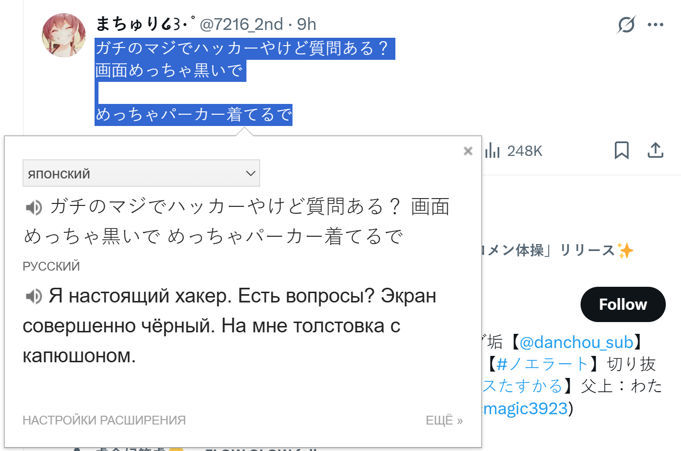 >>475373 Я его кстати зарепортил за призыв к преследованию в титтере, это оказался довольно потешный твиттерный педик, который даже не слышал про витуберов до вчерашнего дня.