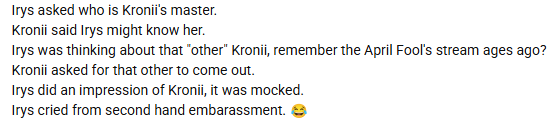 А такое было? Я помню как она плотно так минут 15 беспрерывно газлайтила Айрис, это да, было. Но там видно было что обоим им по кайфу было (ведь Айрис очевидная нижняя) Но вот такого что я не помню. Это точно слезы были или Айрис просто рофла ради изобразила что она хнычет чтобы сманипулировать Крони выставив её агрессором? Можно стрим или дату когда это было?